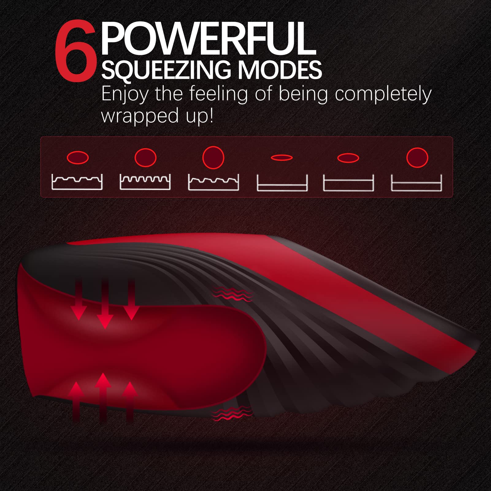 【9 Vibrating & 6 Squeezing Modes】 Male masturbators have 9 Vibrating and 6 squeezing modes. The male masturbator uses motors to drive the gas circulation in the cup, creates a soft sucking, with each contraction and expansion, your bro is tightly wrapped. Male sex toys stimulate your bro, you will feel different stimulation at 9 vibration frequencies. This male masturbator what can bring you a variety of different experiences.【More Stimulation】The interior of our male masturbators with 7 rows ribbed, which give you a different feeling and stimulation by increasing friction. If you want more, that's not a problem at all, some areas are extrudable by hand of our male masterburator toy, to added your pleasure, enjoy the feeling of your bro being completely wrapped up! This pocket pussy is the ultimate product for a male masturbator never be lonely again.