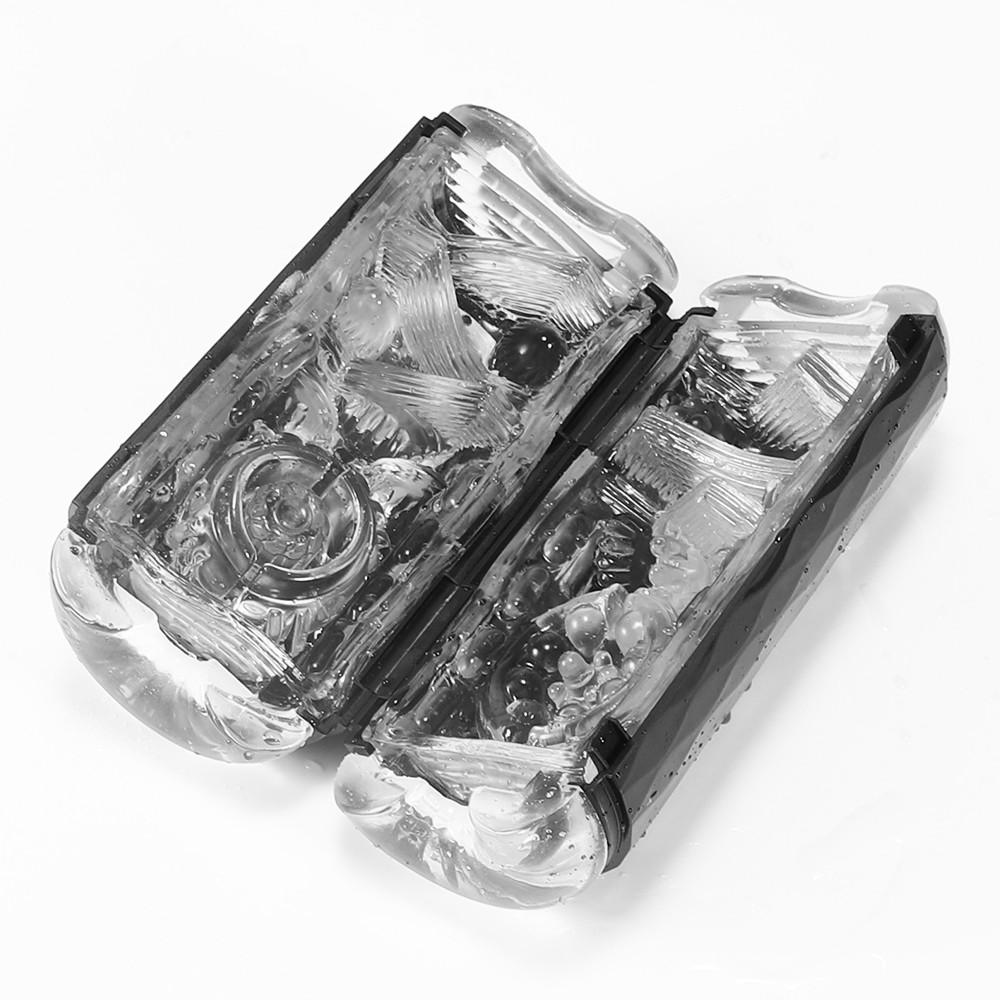 Male masturbator cups get pleasure through internal squeezing. There are two push switches on the shell, you can stuff your dick in, and then manually squeeze it to help stimulate your penis and glans, so as to get a sense of happiness. With two holes, anus and vagina, you can experience double pleasure. The interior has transparent artificial particles and textures, which constantly tease your dick, bringing the ultimate sense of wrapping to men. The shell has a wavy texture, which is easy to hold and prevents it from falling during operation. Two dust-proof shells can be kept clean when not in use, which is convenient for next use.