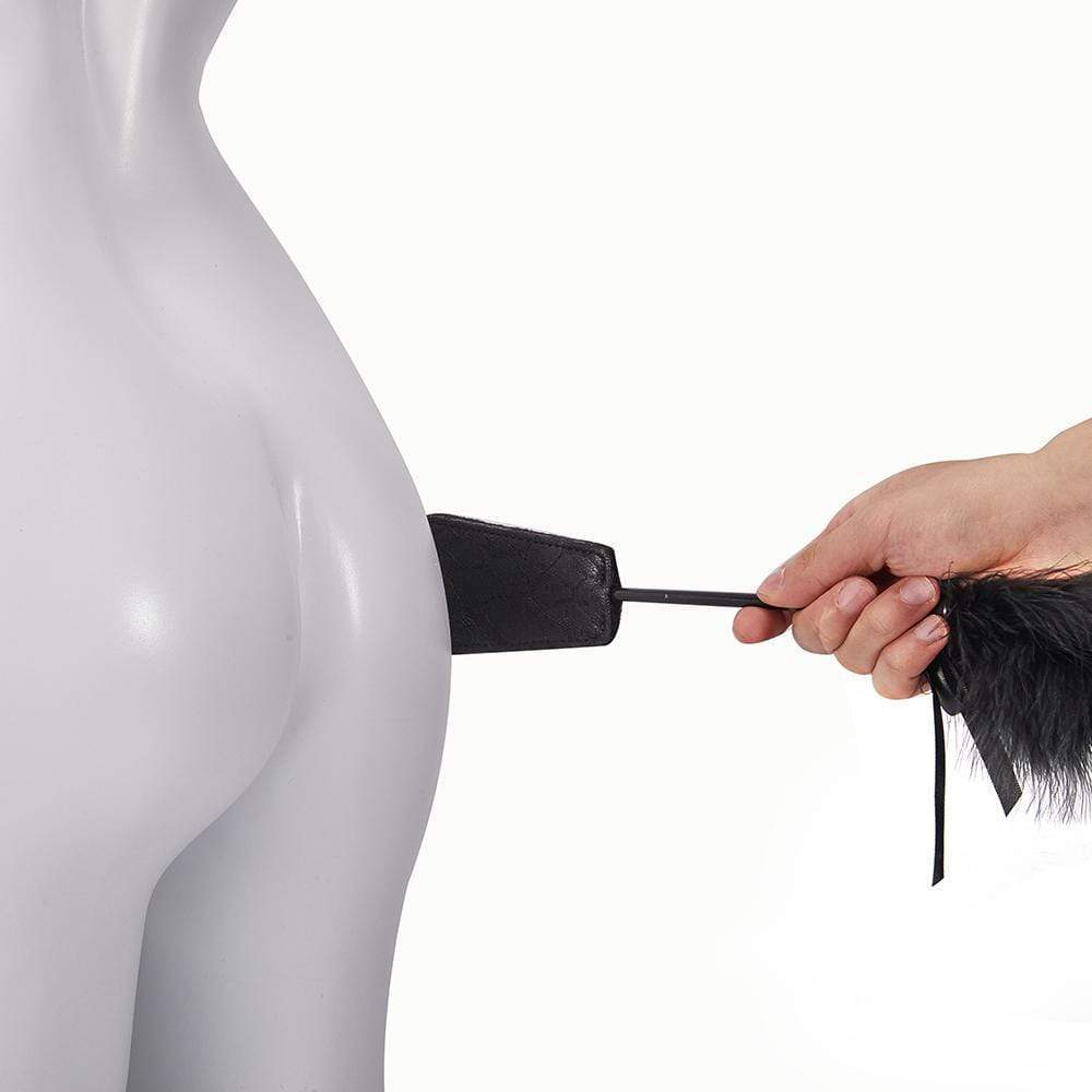 Turn your partner into your submissive slave! This 3-piece suit, blindfolded strap, lace paddle, official handcuffs, contains everything you need to fully realize all the depraved plans you have been brewing for a long time. A blindfold will effectively take away of your mate's ability of vision, there is no easier way to deprive your partner of control than by this, so they have no idea what's coming next, nervously guessing what toys you are gonna employ and where. The handcuff may be the first one you pick. It is designed in the form of official handcuffs, which allows you and your partner to explore the fun of cosplay at home: police and criminals, fresh fun! Also, a lace paddle with feather end is an important partner for flirting. Gently tickling the private parts or spanking heavily, whichever brings unlimited fun. Take control of your lover and release your inner beast!