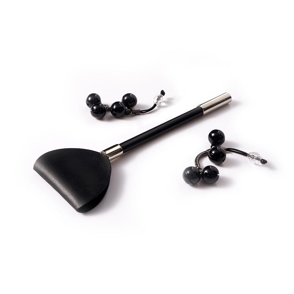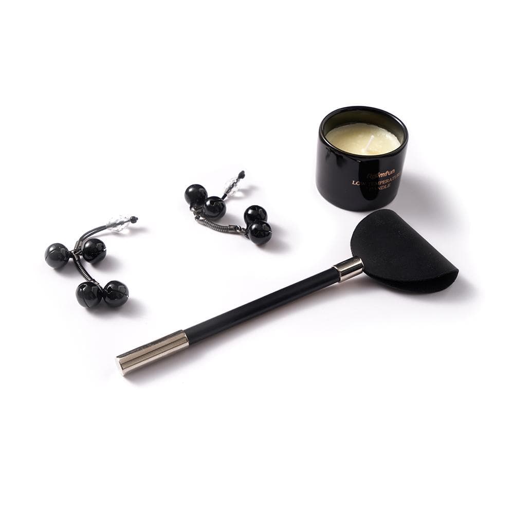 Hi dear, happy wedding! I have prepared an excellent gift for you. Hopefully this won't be coming as a huge shock to you. Get ready for the sweetest wedding night that you will never forget! Open this gift box, a collection of goodies will show up in front of your eyes. Light a candle and place it on the bedside, the charming fragrance gradually spreading throughout the room. Put on an eye mask and stretch yourself on the comfy bed, and the silk ribbons tied to your wrists fall aside. Voila! You've just constructed a new bondage playground. The surprise does not stop there. In this flirting set, you will also find a few more accessories that'll slip perfectly into your bound-up plans for the evening. A teasing bell-feather tickler, a pair of nipple clamps, and a delicate paddle, calling you enjoy yourself.